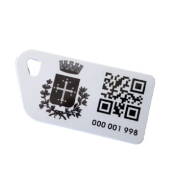 Portachiavi RFID disponibile in tecnologia UHF per letture a distanza. In materiale PVC, permette una personalizzazione fronte retro e una stampa grafica di alta qualità anche con codici barcode, QR Code, etc